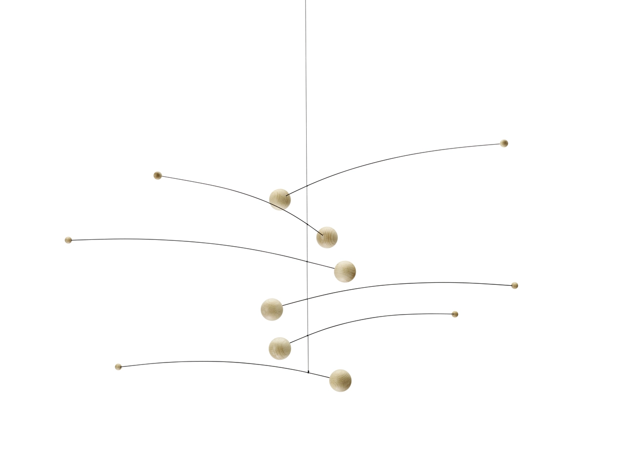 Ole Flensted created his first Mobile in 1970. It is now available in beech wood. Thanks to the high-quality material, the structure has an elegant graphic expression.