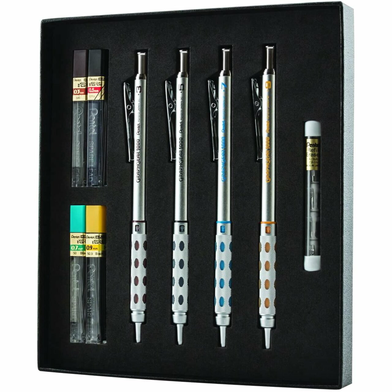 This mechanical pencil set is the best drafting pencil available for architects, drafters, painters, and enthusiasts. It works well when used with templates and rulers, thanks to the 4mm tip design.