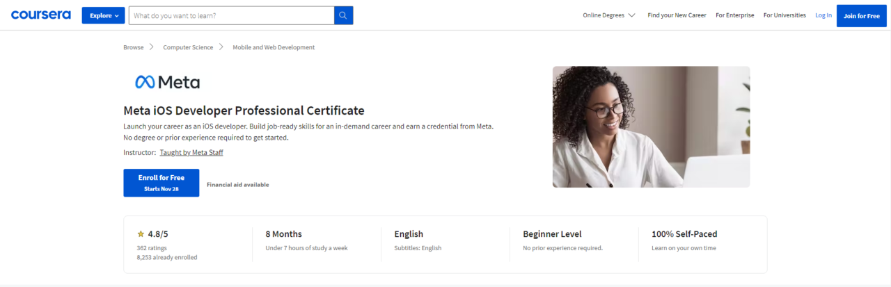 Enroll Here: https://www.coursera.org/professional-certificates/meta-ios-developer