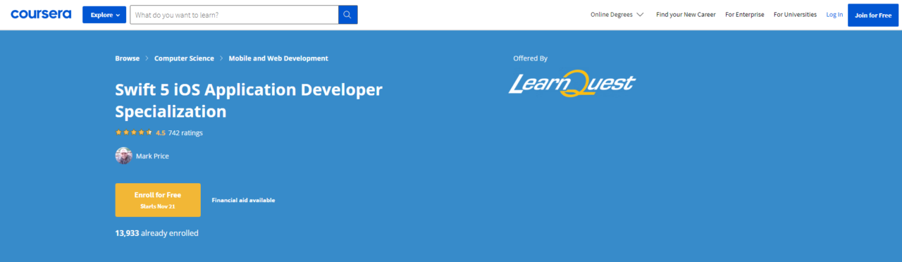 Enroll Here: https://www.coursera.org/specializations/swift-5-ios-app-developer