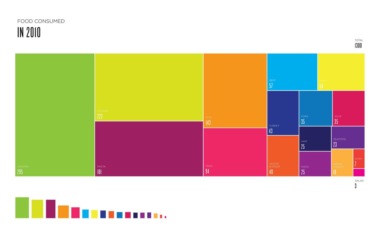 One primary setback of the pie chart is that it doesn’t show the differences in angles. Treemap can tackle this problem by dividing the surface into small rectangles.